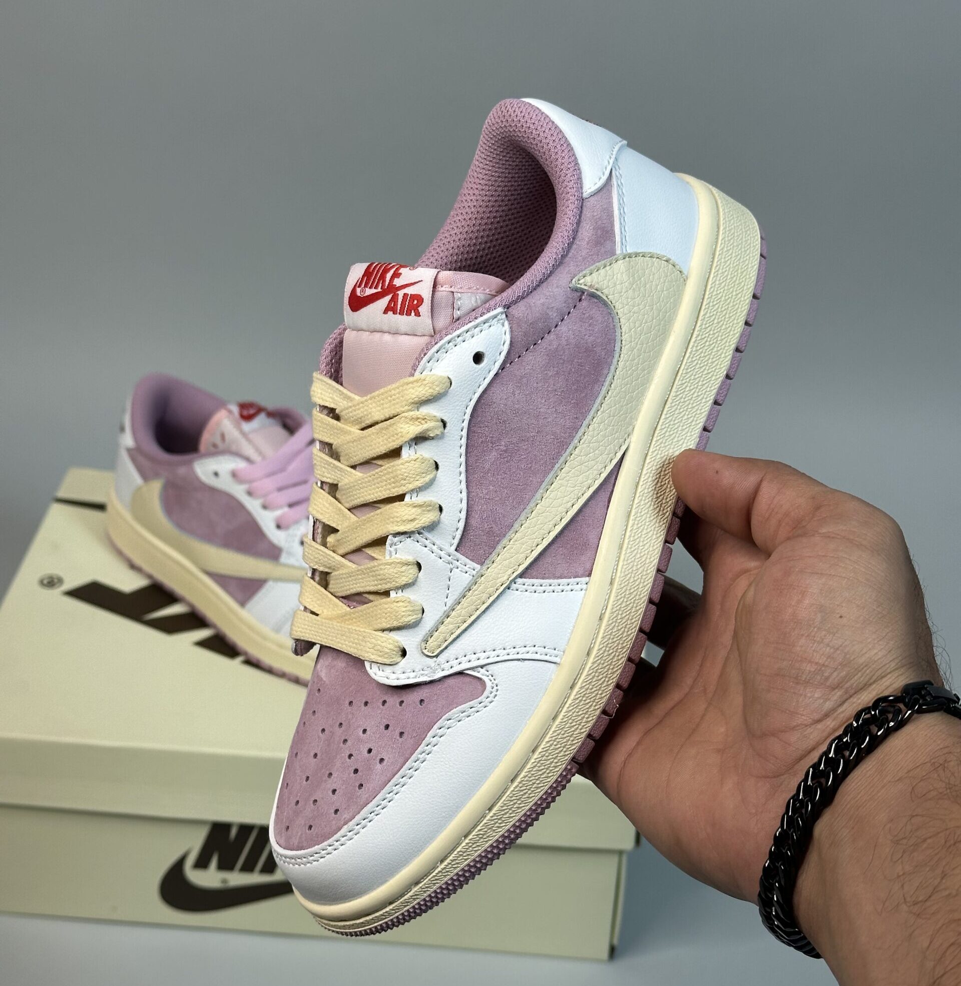 تراویس اسکات صورتی، آخرین شاهکاری است که از همکاری جذاب تراویس اسکات با نایک بیرون آمده است. این کفش با رنگ صورتی ملایم و طراحی خاص خود، به سرعت به یکی از محبوبترین و پرفروشترین مدلهای ایر جردن تبدیل شده است.
